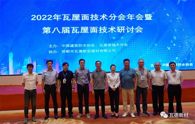 7月27日,由瓦德新材協(xié)辦,作為2022第三屆防水行業(yè)大會(huì)平行論壇的2022年第八屆瓦屋面技術(shù)與市場研討會(huì),在南京白金漢爵大酒店召開。瓦德新材董事長謝富強(qiáng)帶隊(duì)參加。