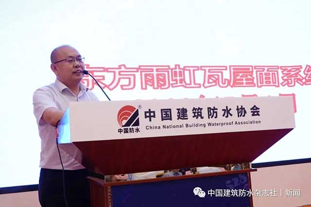 中國建筑防水協(xié)會(huì)瓦屋面技術(shù)分會(huì)輪值會(huì)長、邯鄲市瓦德新型建材有限公司董事長謝富強(qiáng)代表協(xié)辦單位致辭。